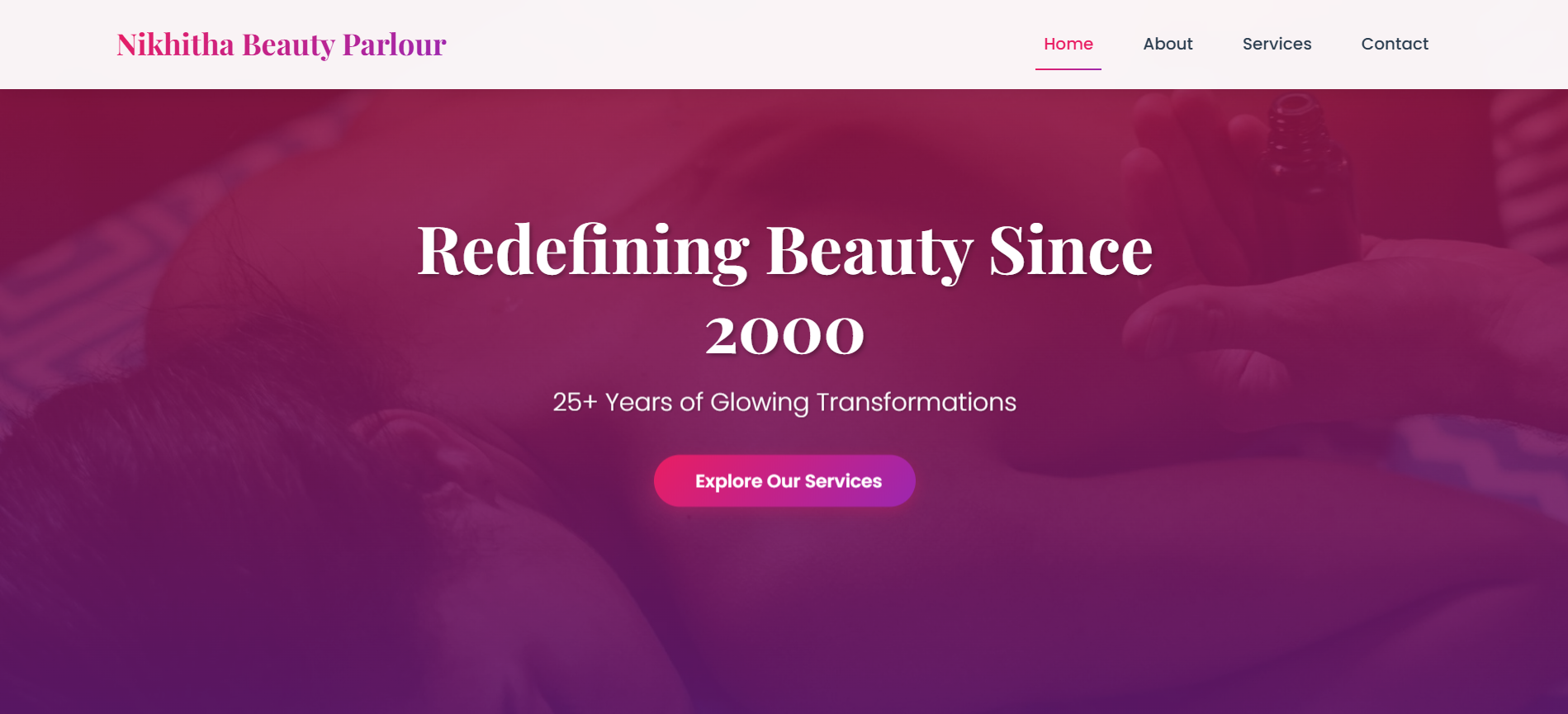 Complete brand website for a 25-year-old beauty parlour — founder story, service showcase, dual-location info, and a warm conversion-focused design.